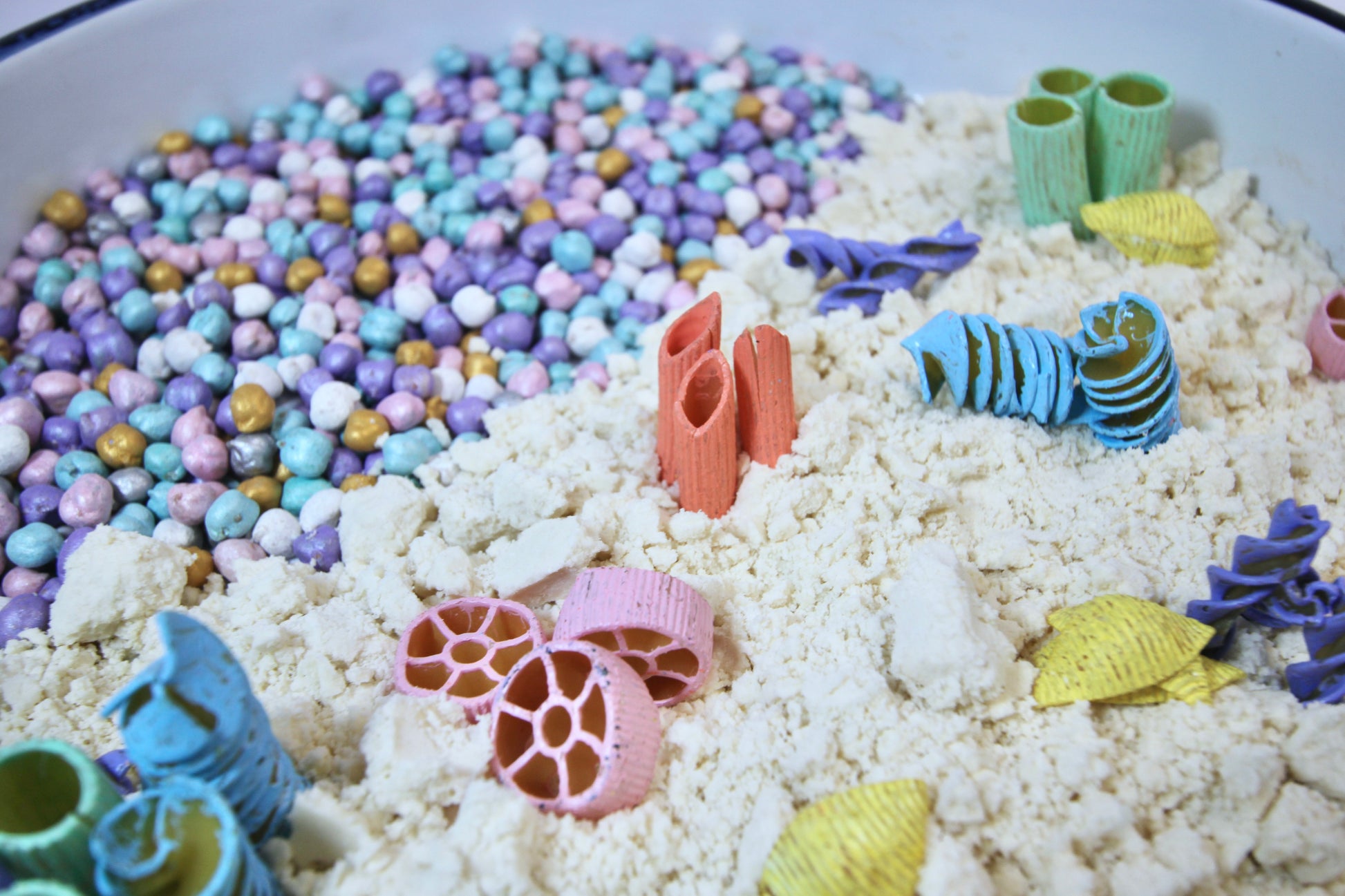 Bring the magic of the reef into your play with the Coral Reef Pasta Sensory Base! Available in two stunning colourways — Vibrant Coral (bold blues, oranges, and yellows) or Pastel Coral (soft ocean blues, mint greens, and corals). Each base is handcrafted to spark creativity and open-ended play, perfect for pairing with ocean-themed tools, trays, and doughs.