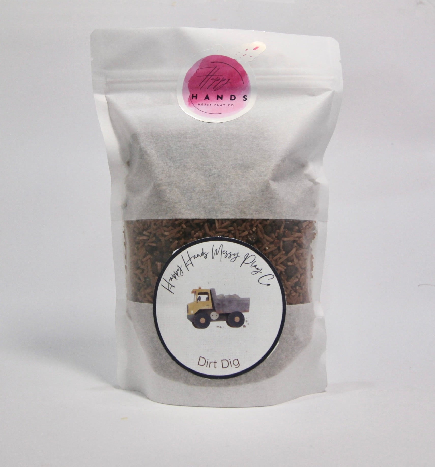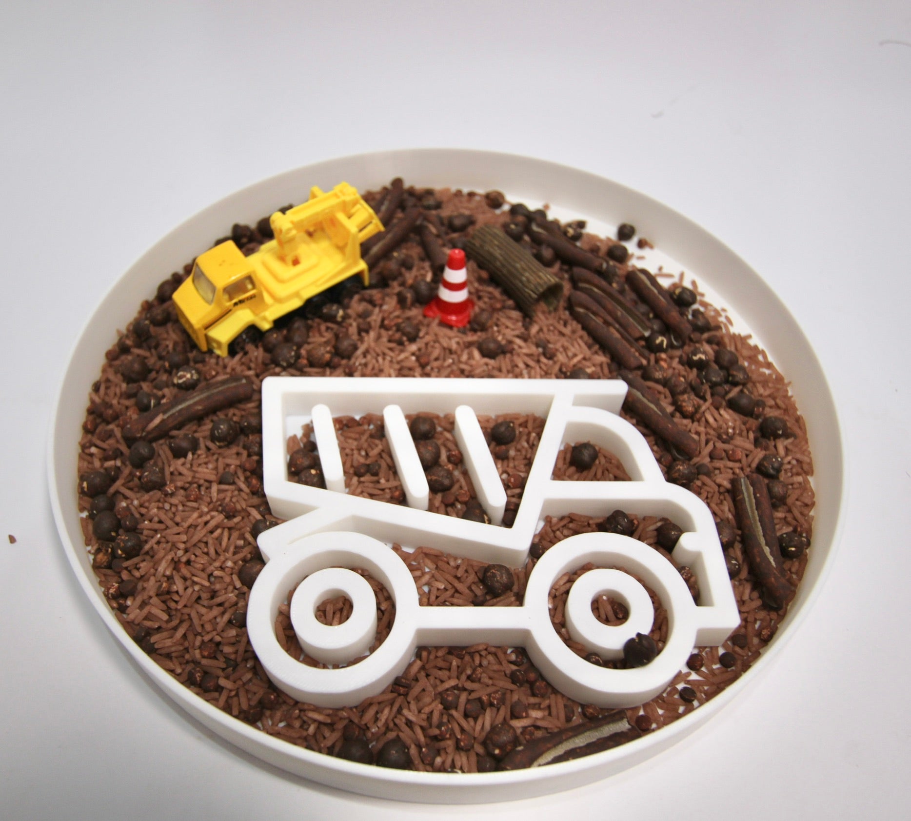 Bring the construction yard indoors with our Dirt Dig Sensory Base – a rich brown rice blend that looks just like soil for little diggers to explore. Pair it with dump trucks, scoops, or our 3D printed cutters for endless construction-themed fun.