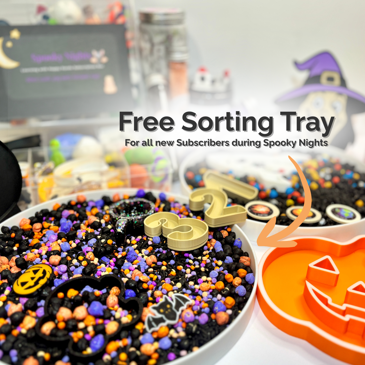 Step into the shadows of Halloween night and soar through the mysteries of outer space. Inspired by cosmic wonder and spooky fun, this month’s box brings galaxies and ghostly adventures together through immersive sensory play. From glittering stars to bubbling potions, pumpkin patches to rocket launches, every element is thoughtfully curated to spark curiosity, encourage hands-on learning, and invite little explorers to create their own spooky-cosmic world.