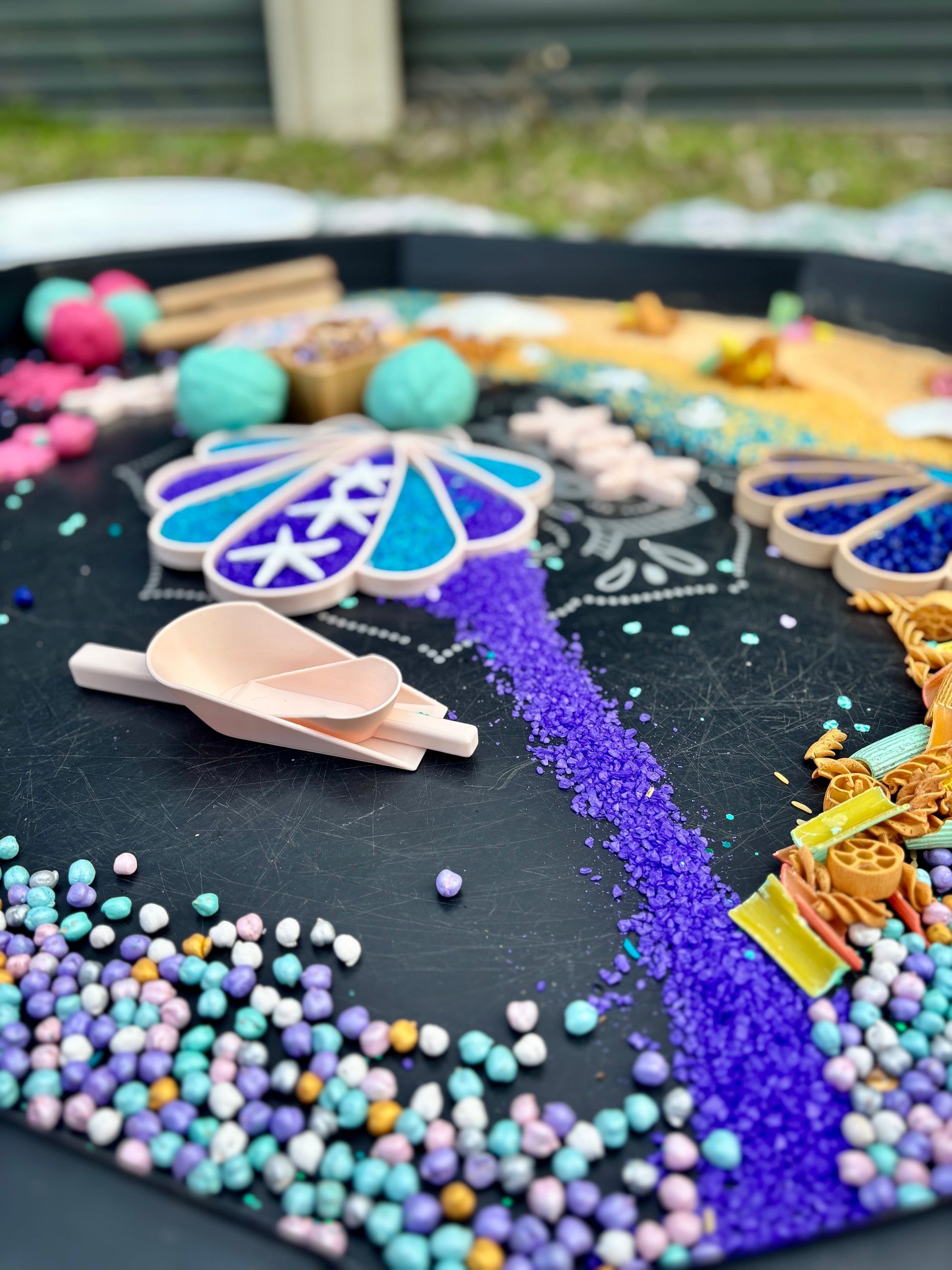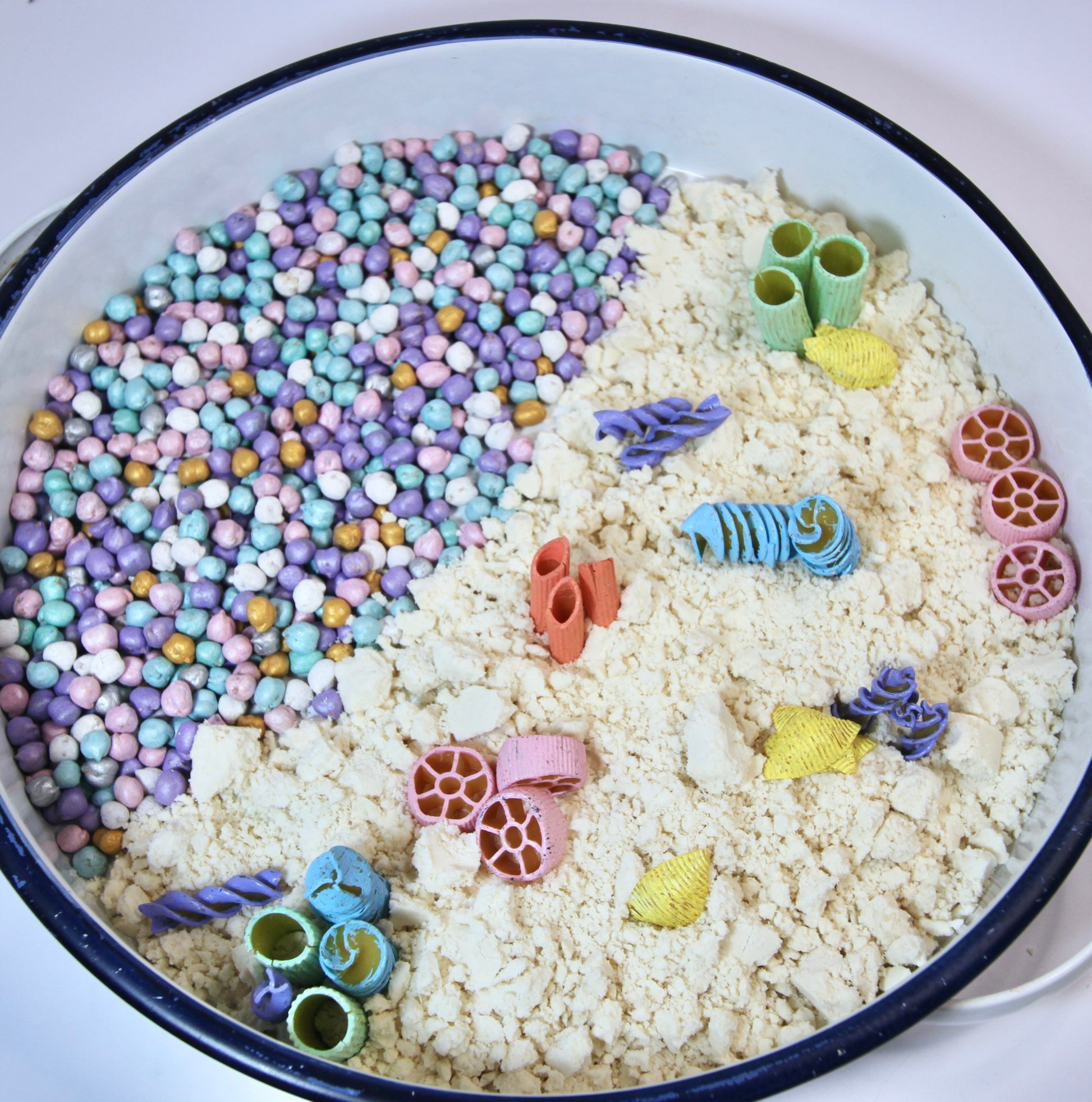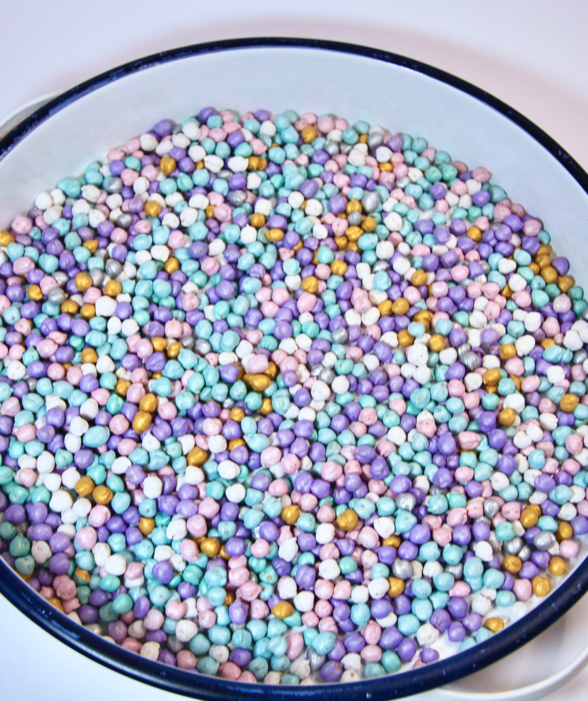 Shimmer and shine with these pastel Mermaid Pearls 🐚✨. Perfect for scooping, pouring, and small-world ocean play, these pearly chickpeas add a magical texture to any sensory tray. Ideal for developing fine motor skills while sparking creativity and storytelling.