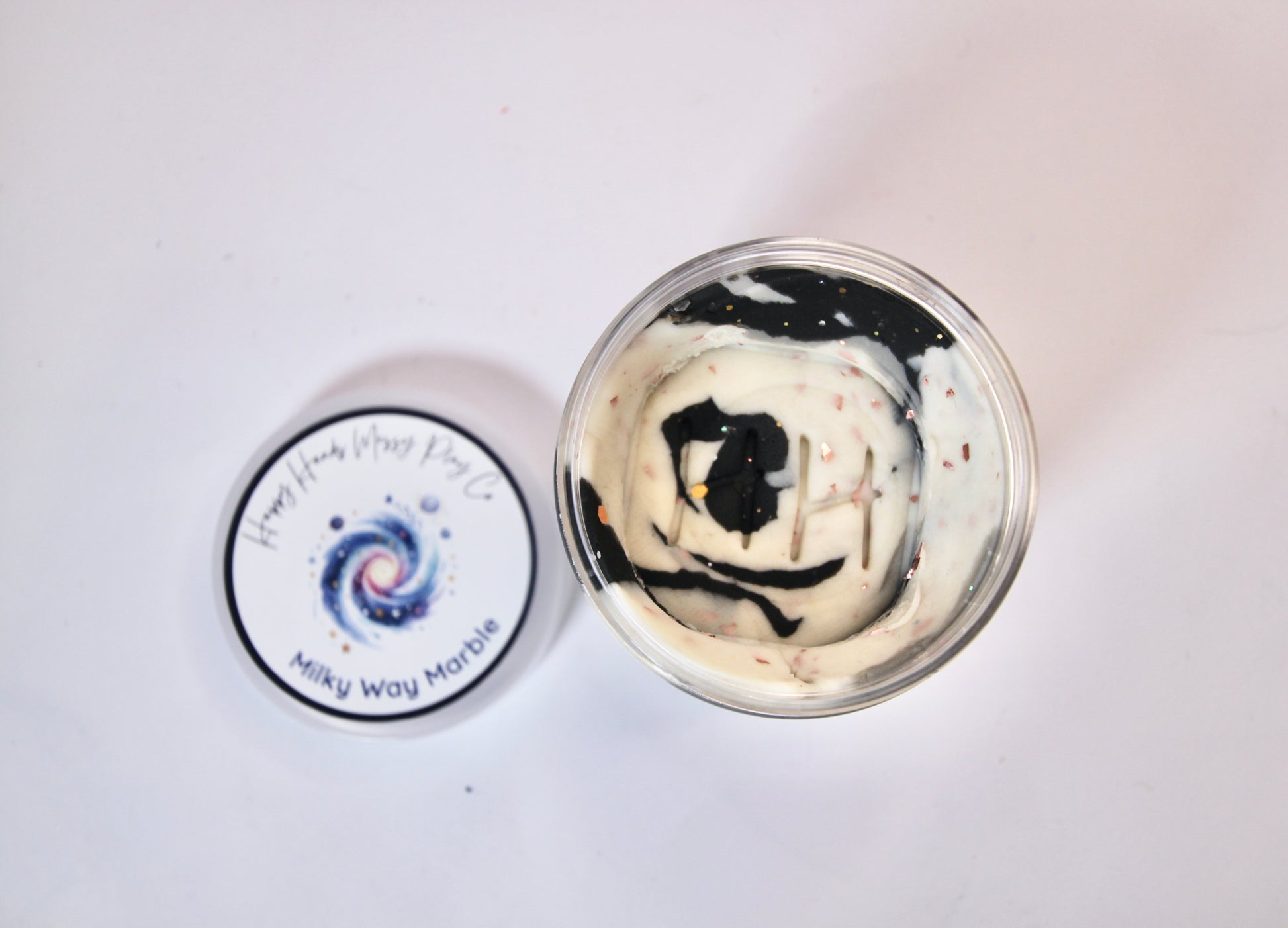 Inspired by our spiral galaxy, Milky Way Marble swirls black and white with shimmering flecks of stardust. Children can stretch, twist, and roll their own cosmic skies, building fine motor strength while imagining the wonders of space. A calming yet creative dough that sparks endless discovery.