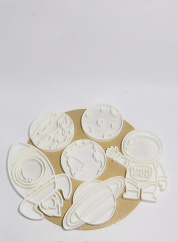 Blast off into galactic play with the Space Tray Set! Includes astronaut, rocket, Saturn, moon, and planet designs. Use them as filling trays, dough cutters, or props for small-world setups. Perfect for space-themed Wonderboxes or science play.