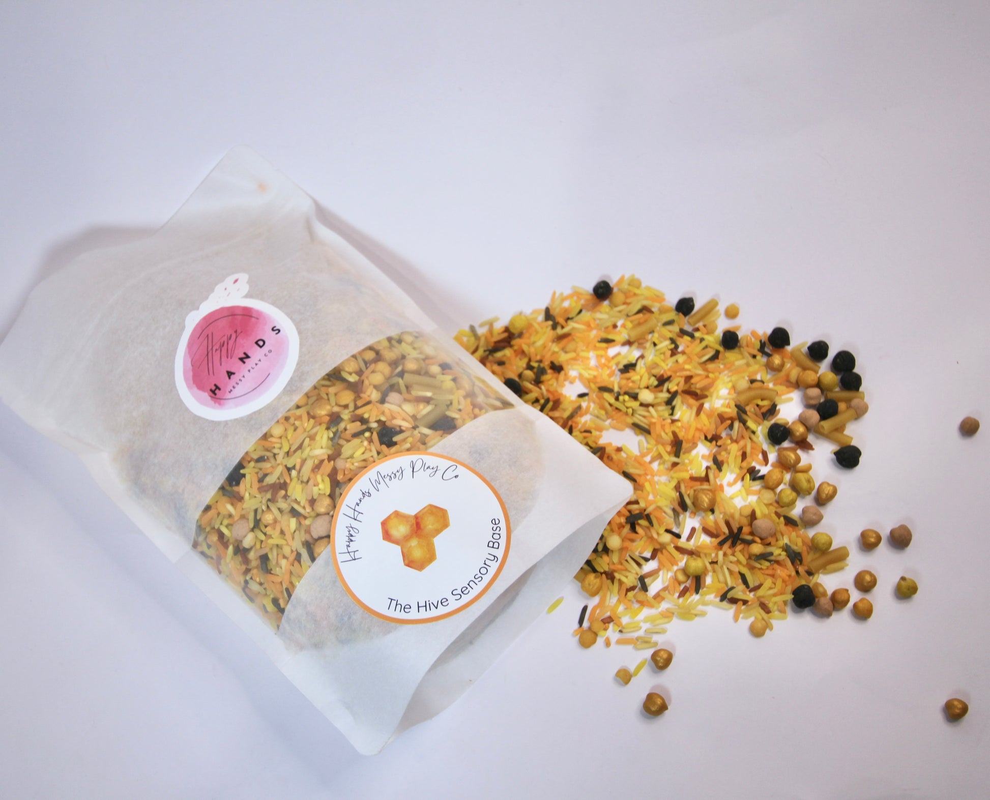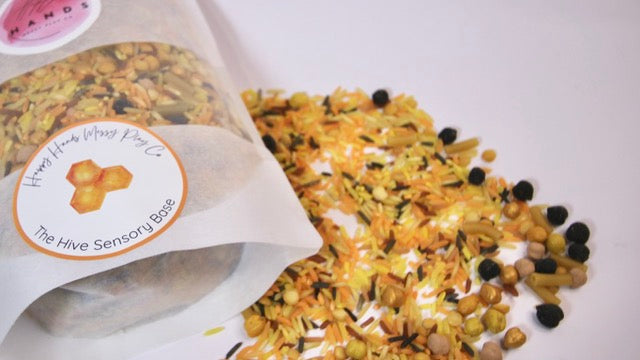 A golden mix of rice, chickpeas, lentils, and pasta coloured in shades of honey, pollen, and the hive. This sensory base is perfect for scooping, pouring, sorting, and insect-themed play. Ideal for setting up small-world bee adventures or pairing with cutters and trays.